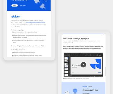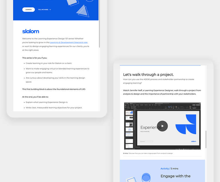The impact? The course is now used to onboard new team members on Talent Management, and rolled out to all of Slalom to bring LXD thinking and skills to client work.