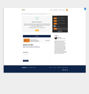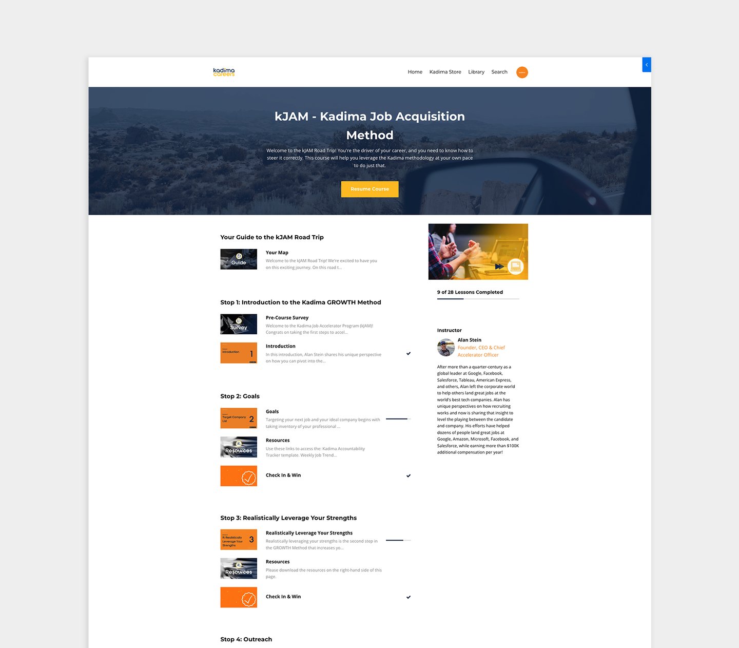 Kadima Careers' kJAM (Kadima Job Acquisition Method) course was lacking gamification and learner feedback to take the experience to the next level.