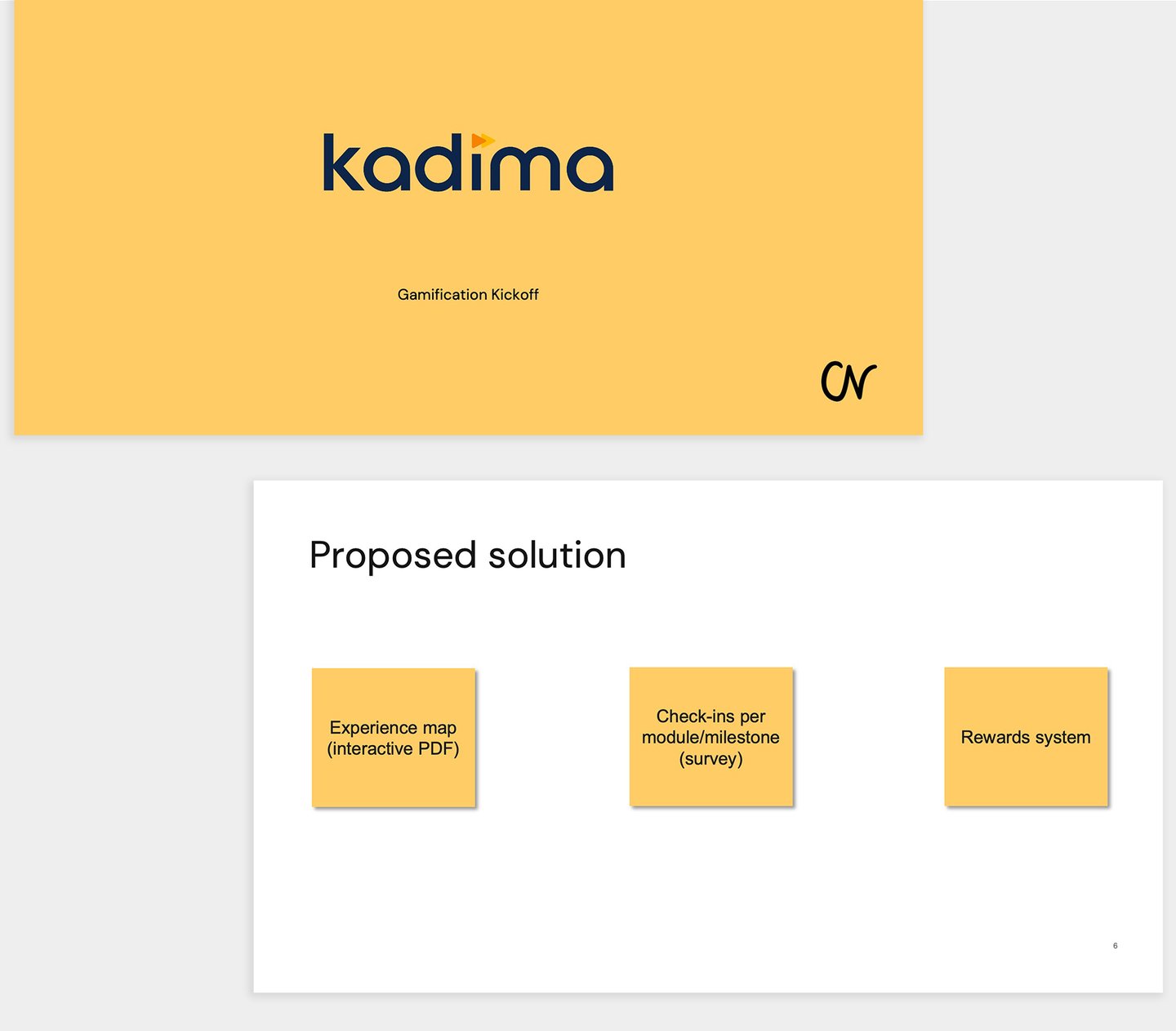 The Kadima team and I brainstormed and iterated on the rewards system and check-ins that would incentivize participants to complete key actions and provide feedback throughout the course.