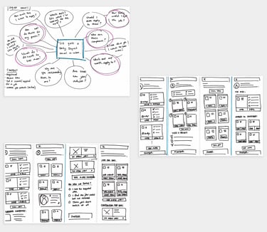 I created a mind map and sketched possible interfaces for each email. The mind map is a way for me to step into the shoes of the persona, Liz Lemon, and think of all the questions she may have at a specific stage of her journey. Those questions ensure the design addresses the user's core needs.
