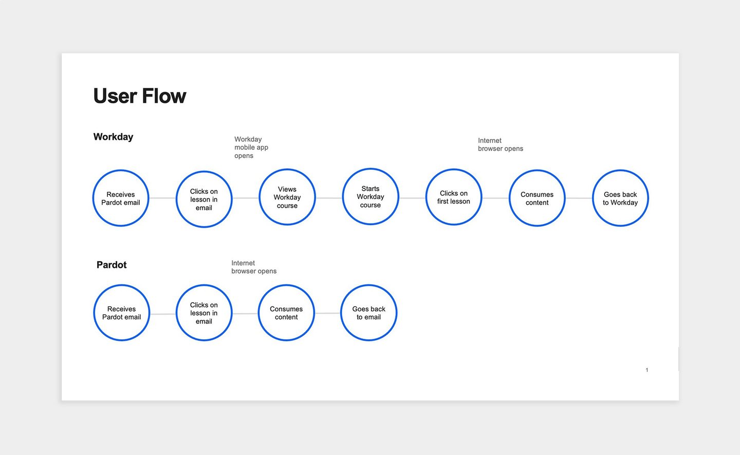 I designed this user flow and presented to the LXD team so we could think through the experience starting from when the learner receives the lesson in their email.