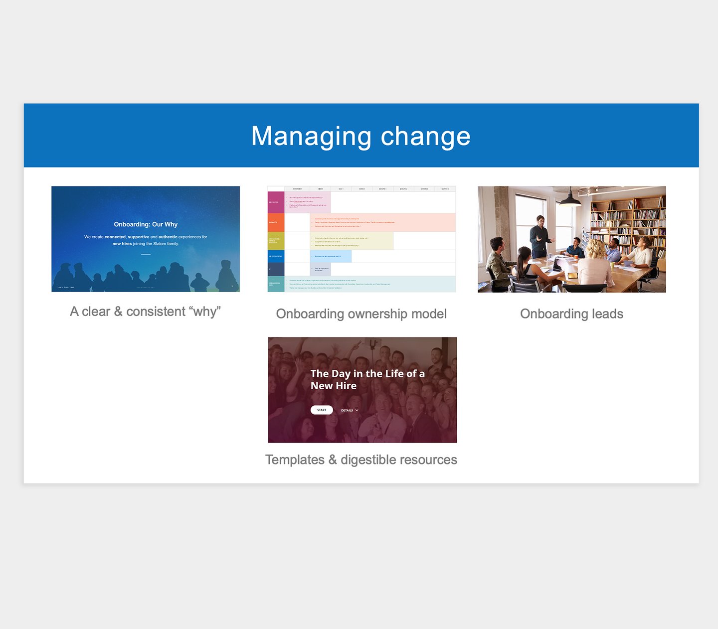 With the launch of Workday as Slalom's internal HR and learning platform, there was an opportunity to improve the onboarding experience.