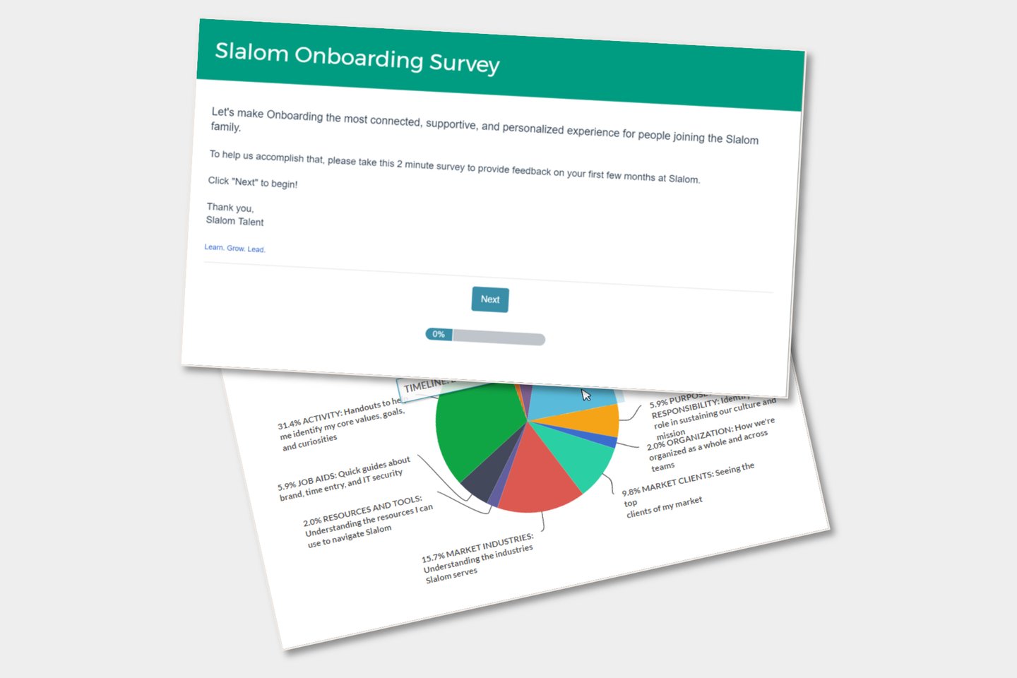 I shorten our onboarding surveys to capture new hire feedback in real-time and with a simple set of intentional questions. New hires were only asked to provide feedback after their New Hire Orientation and at the end of their third month. I worked with survey and data analysis experts on our team to shorten the surveys to 5 intentional questions.