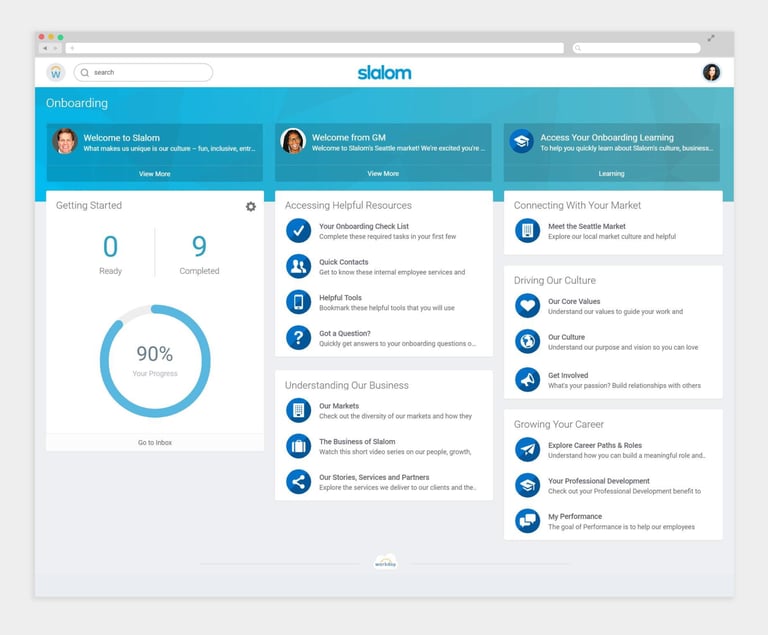 Slalom's onboarding experience was welcoming, but inconsistent across its 25+ offices. Launching Workday as Slalom's internal HR and learning platform meant integrating all people experiences, including onboarding, into the platform.